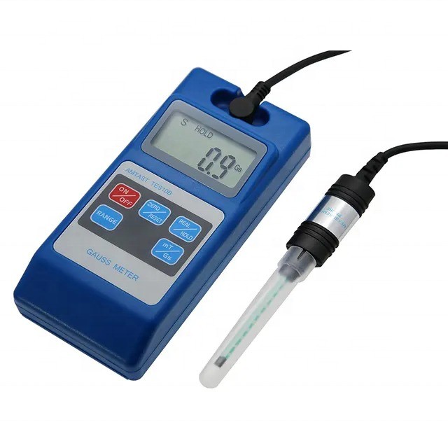 handheld digital gauss meter controlled by single chip microcomputer, which can be used to measure the magnetic induction intensity of dc magnetic field, radiation magnetic field and other magnetic fields. The instrument can be carried around, with a wide range, easy operation and clear LCD display. It has many functions, such as measuring/peak maintaining, MT/GS unit conversion, automatic zero adjustment by push button, 300MT/3000MT range conversion, etc.