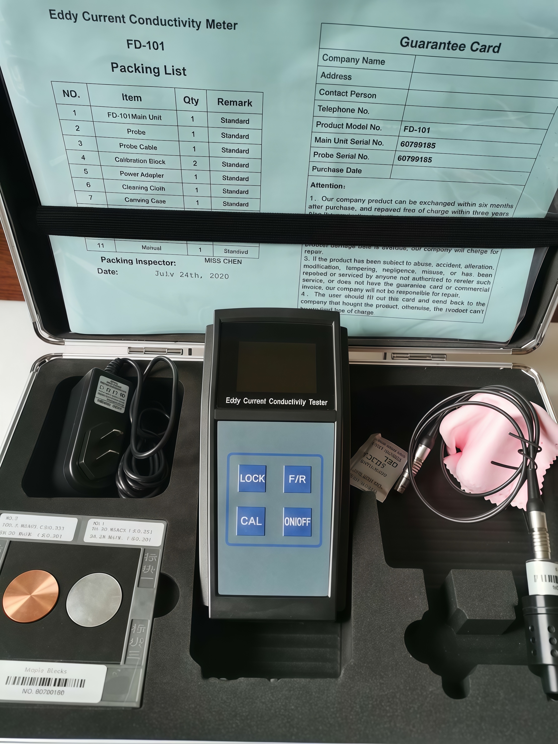 FD-101 eddy current electrical conductivity meters, which are designed for quick & convenient measurement of material property, such as material separate, quality control, material state check and so on. The products use the electromagnetism testing principle, can testing objects focus on non-ferromagnetic materials.