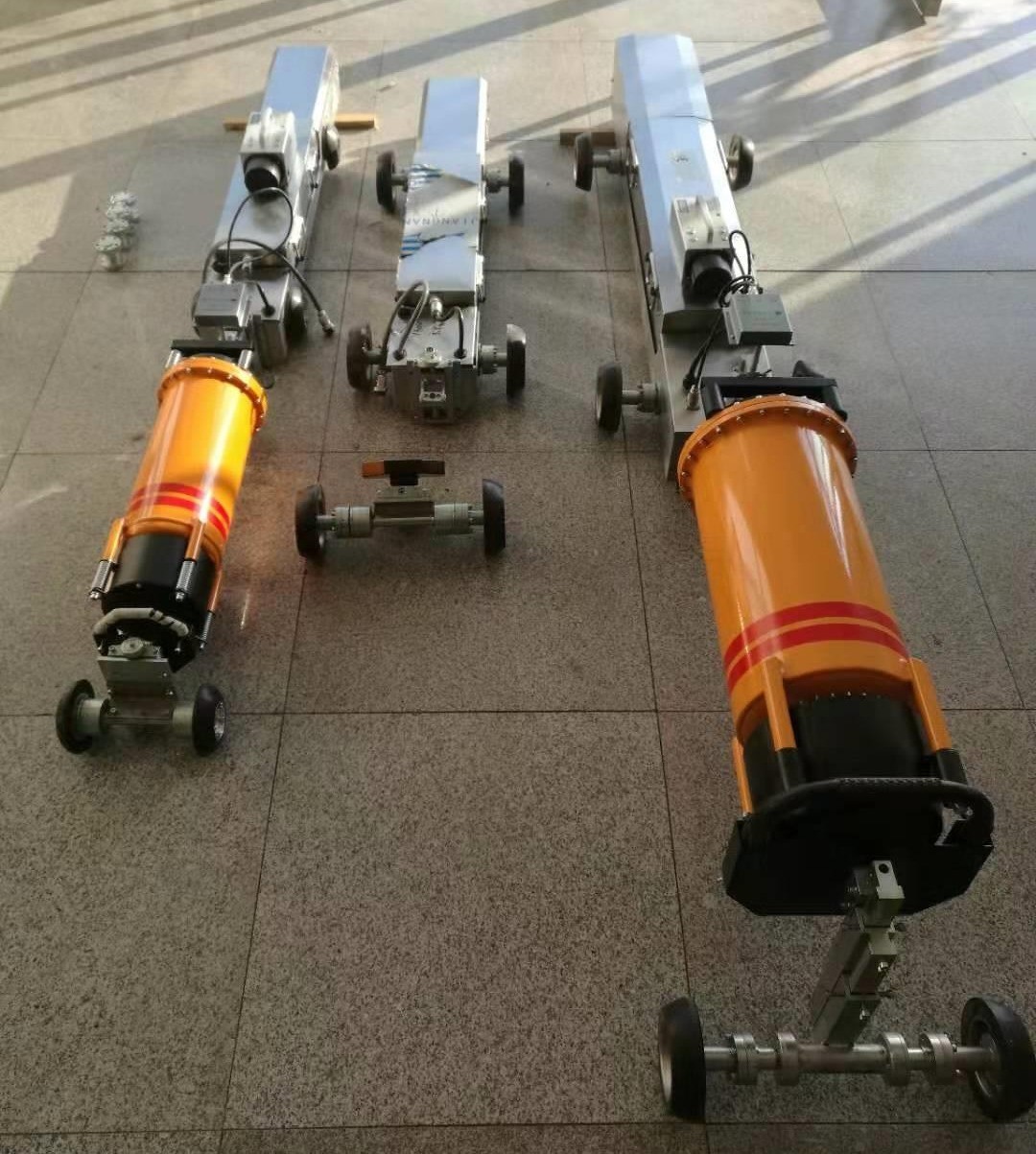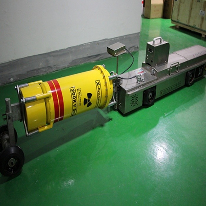 The X-ray pipeline crawlers include the special part that can detect the welding line of long pipeline. The X-ray pipeline crawlers have the advantages of high radiographic quality, high imaging sensitivity, low failure rate and high work efficiency. The X-ray pipeline crawlers have differential driving and vibration absorbers. The chassis of the X-ray pipeline crawlers can be moved in the pipeline steadily without off center running and overturning. The X-ray pipeline crawlers can be moved in the pipeline with great efficiency because it is controlled by PLC with protecting it from blocking and under voltage. The X-ray pipeline crawler is easy to be separated into several parts and then to be put together, so it is easy to carry. You can change the exposure parameter and make the X-ray pipeline crawler move, stop and have an exposure with the exterior controlling source. The X-ray pipeline crawlers are easy to operate.