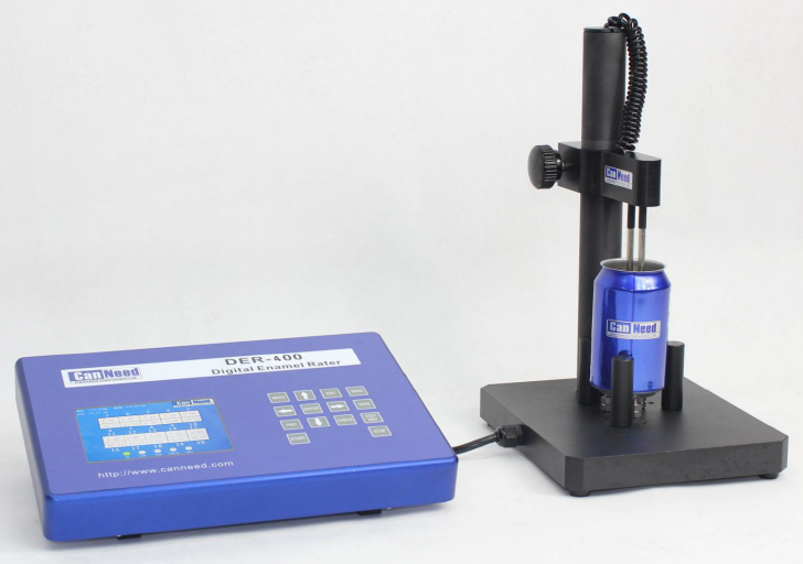 The DER 400 Internal Coating Integrity Tester detects the integrity of internal coatings in cans, measuring coating compactness and current values. Incomplete internal coatings can lead to content corrosion of metal surfaces, compromising product quality and storage stability. When equipped with optional can lid fixtures and vacuum equipment, this instrument can also evaluate the internal coating integrity of can lids.
